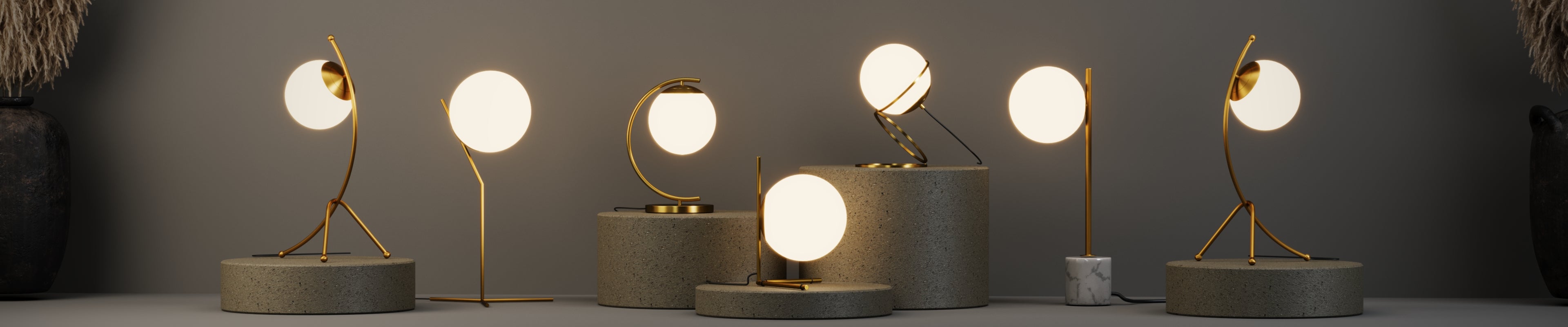 Lámparas de mesa perfectas para acompañar tus momentos de relax. Ideales para mesas auxiliares o mesitas de noche. Disponibles en madera o metal, con pantallas de fibras naturales, tela o metal, y detalles en madera o dorados.